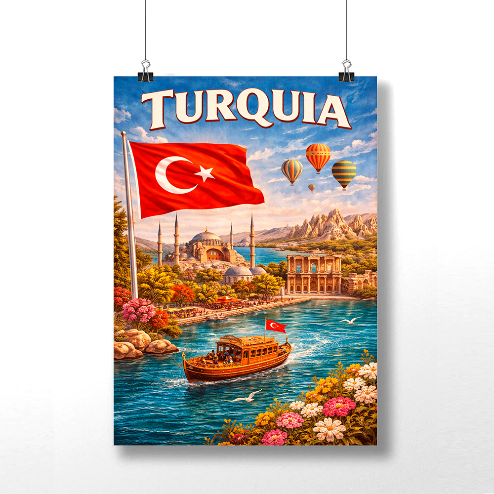 Placa Decorativa Pontos Turísticos da Turquia Istambul em MDF